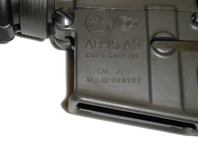 Absolutely 100% Brand New in Box Unfired, Colt Pre-Ban Government Carbine Green Label AR-15 A2, R6520, 3 Digit Serial number! Serial Number is GC000382, RARE, Unblocked Lower Receiver, Semi-Automatic, 5.56/.223, Lever Safety, 16 Inch Chrome Lined Barrel with Bayonet Lug and 1:7 Twist, Paper Wick Still in the Barrel, Unopened Accessory Pack which includes Two 20 Round Mags, Owner’s Manual, Sling, Cleaning Rods & Brushes and Barrel Cap! 6.35 lbs. $75.00 FedEx Ground Shipping with Insurance to your FFL dealer within Continental US only. ADD 4% for Non-Cash Visa, MasterCard, AMEX or Discover. No sales to CA or NY. No sales to any area where this firearm is not permitted. Questions call or text Charles 405-833-3422. |